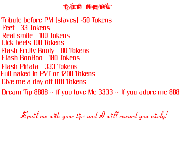 WHAT MAKES ME HAPPY ?? - - - - ❤️ When real gentlemen keep a smile on my face, I love being spoiled ❤️ SLAVES that send me tribute before PM (50 tokens) ❤️ Family vibe in my room and good jokes - - - - - - - ??
