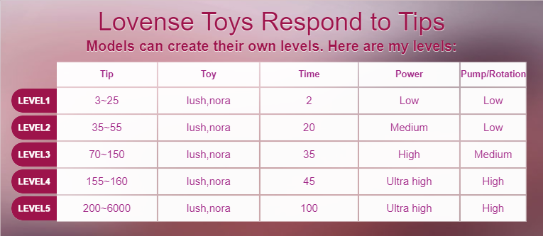 уровни вибрации lovense LUSH,NORA . the vibration levels