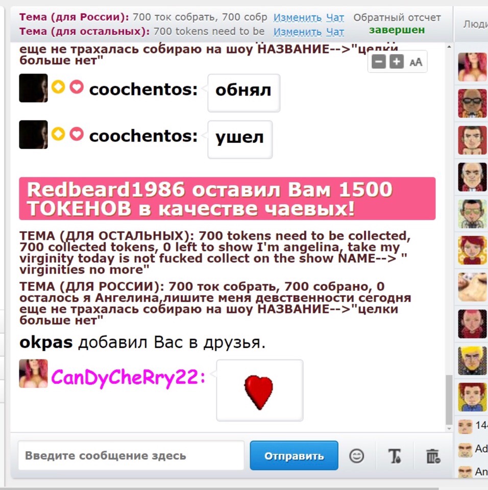 Düğmeye tıklayarak, CanDyCheRry22 'nı ana sayfadaki ilk konuma 60 saniye yükseltebilirsiniz. Bu süre zarfında modelin sohbet odası çok daha görünür ve inanılmaz derecede popüler olacak! Eyleminizle ilgili bir bildirim sohbette görünecek ve modelde görünecek ve diğer sohbet kullanıcıları görüntülenecektir. CanDyCheRry22, bu jesti takdir ettiğinizden ve size karşı ölçülemeyeceğinden emin olabilirsiniz!