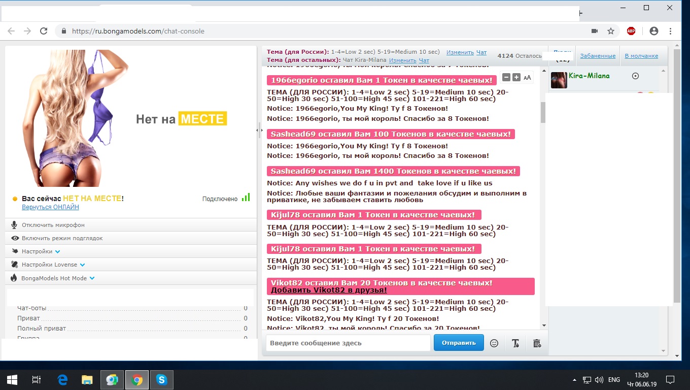 Düğmeye tıklayarak, Kira-Milana 'nı ana sayfadaki ilk konuma 60 saniye yükseltebilirsiniz. Bu süre zarfında modelin sohbet odası çok daha görünür ve inanılmaz derecede popüler olacak! Eyleminizle ilgili bir bildirim sohbette görünecek ve modelde görünecek ve diğer sohbet kullanıcıları görüntülenecektir. Kira-Milana, bu jesti takdir ettiğinizden ve size karşı ölçülemeyeceğinden emin olabilirsiniz!