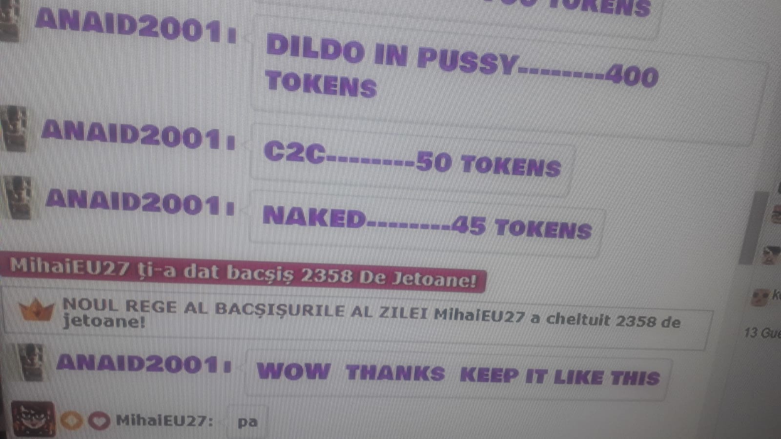 Düğmeye tıklayarak, anaid2001 'nı ana sayfadaki ilk konuma 60 saniye yükseltebilirsiniz. Bu süre zarfında modelin sohbet odası çok daha görünür ve inanılmaz derecede popüler olacak! Eyleminizle ilgili bir bildirim sohbette görünecek ve modelde görünecek ve diğer sohbet kullanıcıları görüntülenecektir. anaid2001, bu jesti takdir ettiğinizden ve size karşı ölçülemeyeceğinden emin olabilirsiniz!